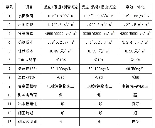 采用聚反應、混凝沉淀一體化高效水處理設備,具有去除效率高、效果穩定、占地小、投藥量少、有機物去除效率高等特點。