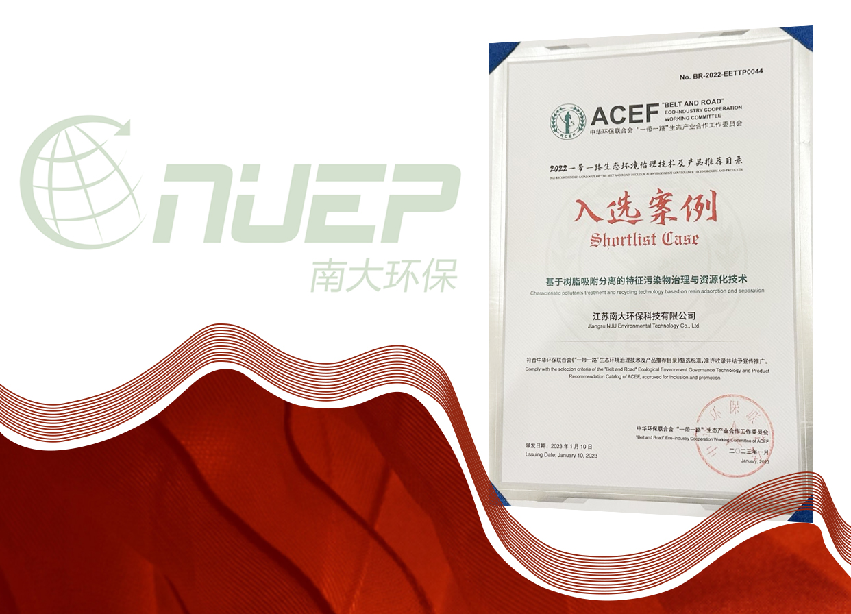 1月10日,由中華環保聯合會主辦的“‘一帶一路’經濟與環境合作論壇暨‘一帶一路’生態產業合作工作委員會成立大會”在北京召開,大會現場發布《“一帶一路”生態環境治理技術及產品推薦目錄》,南大環保“基于樹脂吸附分離的特征污...